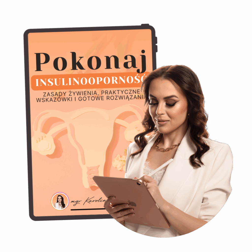 W każdym pakiecie otrzymujesz ode mnie poradnik “Pokonaj insulinooporność”. To wiedza w przystępnej formie – zasady żywienia, praktyczne wskazówki i gotowe rozwiązania, które pomogą Ci lepiej komponować posiłki przy insulinooporności.